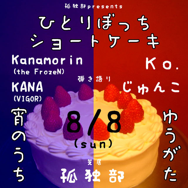 名古屋のライブハウスを中心に活動する演劇ユニット『孤独部』と申します。 突然ですが!! きたる、8月8日(日)に、名古屋新栄のライブハウス「SiX-DOG」にて、 弾き語り×芝居のスペシャルイベントを行います!!!! 今回は、弾き語り×2+芝居 を、なんと2ステージ!! ライブハウスでは異例の形式による、スペシャルライブ!! 孤独部も、これまでとは一味違う、 全力ハイテンションなポップな喜劇をお届け!! 初見さん大歓迎です!!! ふだん弾き語りを聴かない人も!! ふだん演劇を観ない人も!! この機