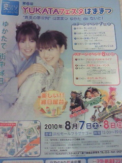 浜松夏祭り「ゆかたフェスタ」 日時:8月8日(日) 13時15分〜14時 ※雨天決行 場所:モール街 サゴー前 出演:H&A・ミラクル・MAI←