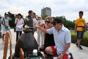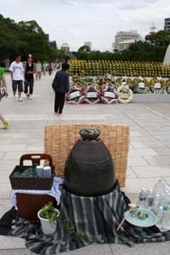 水に感謝!! 平和と水環境を守りましょう。 長崎のみなさん、一緒に原爆献水を供えませんか。 キャンペーン名: 2010被爆水琴窟に注ぐ原爆献水inナガサキ 〜原爆献水は名水を供えましょう〜 キャンペーンの内容: 広島市黄金山の麓の旧家(爆心地から3.2km)で被爆した水瓶で、持ち運びできる水琴窟を製作しました。この被爆水琴窟を長崎平和公園平和祈念像前に置き、ナガサキの名水とヒロシマの名水を合わせ水にして被爆水琴窟に注ぎ原爆献水を行います。ナガサキの皆さんと一緒に平和を祈り鎮魂の音色を響かせます。 下記の日程で行いま