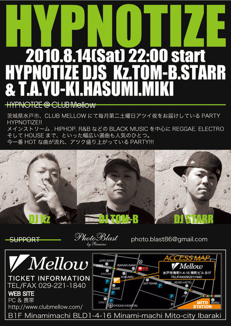 茨城県水戸市CLUB MELLOW にて、毎月第二土曜日熱い夜をお届けしているパーティーHYPNOTIZE!