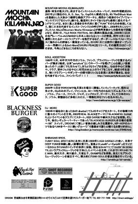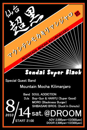 仙台で活躍中のFUNKDJ&BANDに加え記念すべき第一回目のスペシャルGUESTは日本が誇るFUNKBAND「Mountain Mocha Kilimanjaro」の登場 。