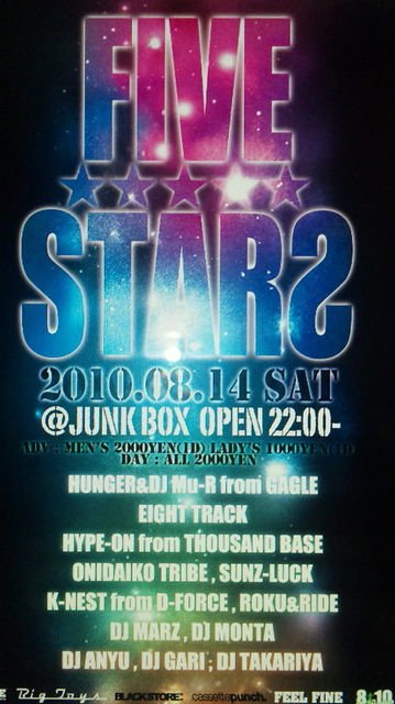 DOOR:2500YEN PLUS ONE DRINK CHARGE(500YEN) 2010/8/14(土曜)