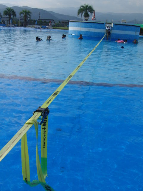 好評だった、水上スラックライン企画。 暑い夏限定ってことで、さっそくに第2弾です。 場所は、巨峰園の造波プール(但し、ナイター中は、波はありません) 17:00からラインを張って、おわりは日没(19:30頃)まで。 初体験の人も大歓迎なので、レベルなんて気にせず 思い切ってドボーーーンとプールに落ちちゃいましょう 【注意事項】 参加費は無料ですが、 ナイタープールの利用料(500円)は別途必要です。 ナイタープールの営業時間は、17:00〜20:30です。