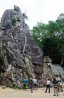 毎年大好評のクライミングのメッカ「廻り目平」でのキャンプ。 初めてでも、小さなお子さんでも、もちろん経験者でも楽しめます! フリークライミングは自分の手と足を頼りに岩を登るスポーツ。 トップロープという方法で、力つきてもロープにぶら下がって安全に下りることができます。 その魅力は最後まで登りきったときの達成感ですが、途中でぶら下がったくやしさもまた魅力だな♪ 経験者には楽しい課題作りの天才・アラジンクライミングの小川さんがご希望に応じます(笑)