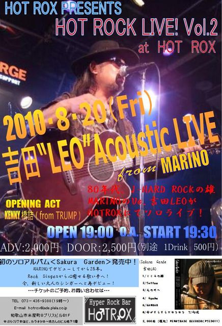Vo.吉田LEO氏に和歌山でソロLIVEを行っていただく運びとなりました。