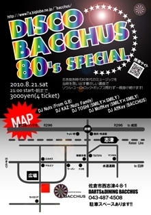 夏の終わりに80'sパーティー!! 2010.8.21(土) 21:00 start 〜 朝まで 古き良き時代80年代のミュージックを 当時を思い出す選曲で、ソウル・ユーロ・ロック・ポップス問わず 一晩掛け続けます!! DJ Nuts, KAZ, TOSHI, Mo!!Key, 、A!!Key 3000yen (4 ticket)