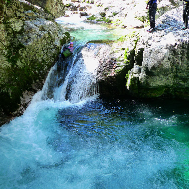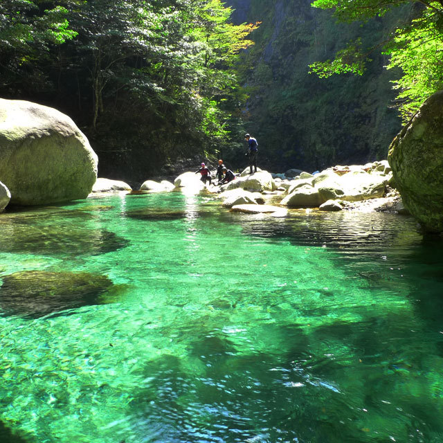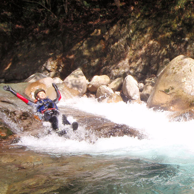 Lv.2前鬼川コース 水の透明感は他のコースを凌駕し、独特の青く透明な水は被写体としてもすごい。 滑らかな川底が多数点在しているので滑り台も随所で楽しめる。 コース中に小滝や天然のプールなどが点在。スライダーから潜水まで満喫できるコース。 2010年からは、コースをリニューアルし、下りだけのコースになりました。 楽にキャニオニングを満喫できます。 なんと!! 一般価格 10,500円が uliuli価格で7500円 開催人数がいるので友達連れてマイナスイオンをたっぷり浴びよう!! 数名送迎相談
