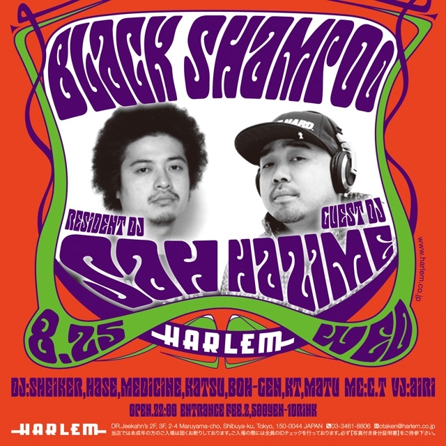 8/25(水)渋谷HARLEM "BLACK SHAMPOO" OPEN 22:00 GUEST DJ: HAZIME RESIDENT DJ: SAH エントランスにて「ニックスのゲストでフレッシュネス」と言っていただければ、1500¥/1Dで入場できます! メッセージ頂ければ個別にゲスト取ることも可能なのでよろしくおねがいします!