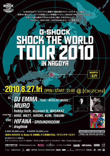 「時計は壊れやすいもの」という常識を覆し 「タフネスウォッチ」という今までにないジャンルを築き上げたG-SHOCK。 ミュージック、スポーツ、アート、ファッション等の様々なカルチャーと融合することで新たなカルチャーを生み出し時計という枠に収まりきらない”G-SHOCK” というジャンルを確立してきた。このようなカルチャーと融合していくG-SHOCK は日本だけでなく世界中でムーブメントを巻き起こしている。 G-SHOCK が世界中に衝撃を与えるミックスカルチャームーブメント、それが『SHOCK THE WORLD』その『SHOCK THE WORLD』を全世界の人々に