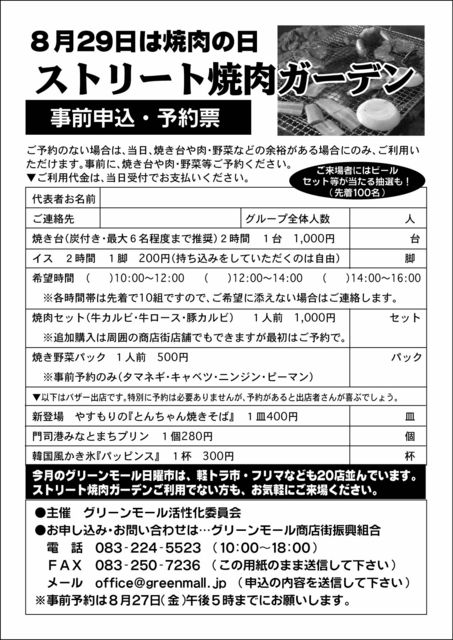 ¡¡£¸·î29Æü¡ÊÆü¡Ë¤Ï¾ÆÆù¤ÎÆü¤È¤¤¤¦¤³¤È¤Ç¡¢²¼´Ø±ØÁ°¾¦Å¹³¹¤Î¥°¥ê¡¼¥ó¥â¡¼¥ë¤Ç¤ÏÆüÍË»Ô¤ÎÆü¤Ç¤â¤¢¤ê¡¢ºòǯ¼Â»Ü¤·¤Æ¹¥É¾¤À¤Ã¤¿¡Ø¥¹¥È¥ê¡¼¥È¾ÆÆù¥¬¡¼¥Ç¥ó¡Ù¤ò³«ºÅ¤·¤Þ¤¹¡£ ¡¡¾¦Å¹³¹¤ÎÃæ±ûƻϩ¤òÊâ¹Ô¼ÔÅ·¹ñ¤Ë¤·¤Æ¡¢¾ÆÆùÂæ¤òʤ١¢¥¹¥È¥ê¡¼¥È¤Ç¤Î¾ÆÆù¥¬¡¼¥Ç¥ó¤ò³Ú¤·¤ó¤Ç¤â¤é¤ª¤¦¤È¤¤¤¦¤â¤Î¤Ç¡¢º£Ç¯¤Ï10Âæ¤Û¤Éʤ٤ޤ¹¡£ ¡¡¾ÆÆù¤ä¾Æ¤ÌîºÚ¤Ê¤É¤â¡¢¥°¥ê¡¼¥ó¥â¡¼¥ë¤Î¤ªÆù²°¤µ¤ó¤Î¶¨ÎϤǡ¢£±¿ÍÁ°¤º¤Ä¤Î¥Ñ¥Ã¥¯¤òÍѰդ·¤Æ¤â¤é¤¤¡¢ÈÎÇ䤷¤Þ¤¹¤Î¤Ç¡¢¤¢¤È¤Ï¾Æ¤Âæ¤Ç¹¥¤¤ÊÍͤ˳ڤ·¤ó¤Ç¤¤¤¿¤À¤¯¤³¤È¤¬¤Ç¤¤Þ¤¹¡£ ¡¡¤½¤Î¾¡¢¥Ð¥¶¡¼½ÐŹ¤Î½éÅÐ¾ì¡Ø¤È¤ó¤Á¤ã¤ó¾Æ¤¤½