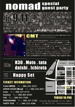 岡山の駅前に新しくOPENしたYEBISU YA PROにて現在のアンダーグラウンドミュージックシーンにおいて絶大なる支持を受けるCMTが初の来岡。