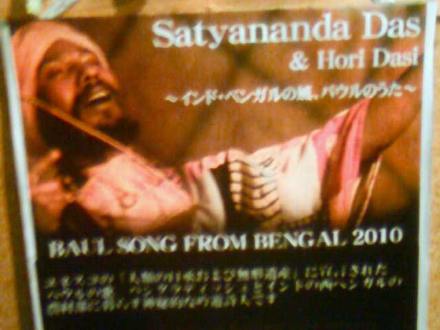 ☆ ショッタノンド・ダス 日本ツアー2010 in 岩手 ☆ 〜 インド・ベンガルの風、バウルのうた 〜 インド西ベンガルより来日した、Satyananda Das(ショッタノンド・ダス)の LIVEです。 9月2日(木)Open 20:00〜/Start20:30〜 @Asian Bar & Cafe MIUMIU 奥州市水沢区駅通りメイプル向い 0197-25-4337 Ticket Adv\2000(1d)/Door\2500(1d) 前売り取扱い MIUMIU(0197-25-4337) ----------------------------------------------------------- ☆バウルとは・・・ 現在のインド東部とバングラデシュ地方に