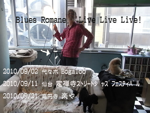 09/02(木)「ブーガル」代々木 http://www.bogaloo.net/main.html ◆桂有紀乃 http://www2.ocn.ne.jp/~s.k.cook/index1.html ◆CRAYON CANDY http://crayoncandy.jimdo.com/ ◆オガワマユ http://d.hatena.ne.jp/mayudama_lala/20090307 ◆ひとりMILDS、 http://isasakaweb.com/milds.htm http://mixi.jp/view_community.pl?id=3924746 ◆ブルーロマン *ブルースロマンはトリです。 三人で演奏です。 ■OPEN 18:00/START 18:30 ■前売/2,200・当日/2,500(ドリンク別)