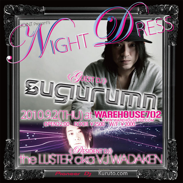 Big Partyのお知らせです! ------------------------------------------------------------------------- DISCOUNT \1500円 どなたでもディスカウントお取りできますのできになった方は当日の11時ぐらいまでに“お名前”と“おおよその人数”を明記の上、私までメッセージを下さい☆ ------------------------------------------------------------------------- 9/ 2(木)NIGHT DRESS@麻布十番warehouse702 ■ConceptJOINT Presents 「NIGHT DRESS 」 木曜日にして都内最大級のウィークデーモンスターイベント『NIGHT DRESS