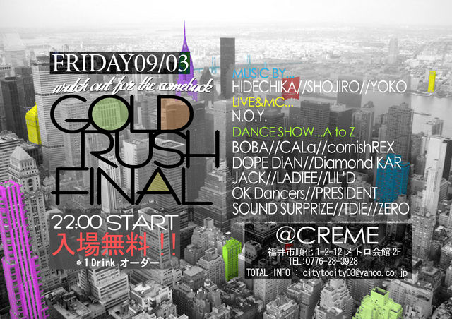 9月3日の「GOLD RUSH」@cremeは、、