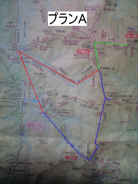 【概要】 http://mixi.jp/view_event.pl?id=54101405&comm_id=4914290 前回のイベント参照 ■プランA 苗場の駐車場に車を置いて1日目赤いコース、余裕があれば緑のコース 二日目は青のコースで戻ってくる。 ■プランB 平標登山口の駐車場に車を置いて1日目赤いコースで山の家からは空荷。 二日目は青のコースで戻ってくる。大源太は空荷ピストン。 プランAかプランBのどちらかで行こうかと思ってます。 【日時】 2010年9月4日 登山・平標山の家テント、小屋泊 2010年9月5日 登山、自由参加の交流会 http://www.steak-ke