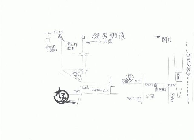 7時30分スタート!!(3〜4時間ぐらいは飲み放題にしてくれると思います^^) お先に到着した方は「はるの予約で・・・」と言えば奥のお座敷に定員がご案内します 着いた方から適当に飲んじゃいましょう お店の場所は地図を書いてみましたのでご参考よろしくです 地下鉄でくるかたは蒔田駅、二番出口にでてください! そして岡村小学校方面に歩いてきて天龍という焼肉屋さんと100円ショップの間の道を少し歩くと右側にあります。 蒔田駅からは徒歩5分ぐらいです! 3000円で飲み放題プラス食