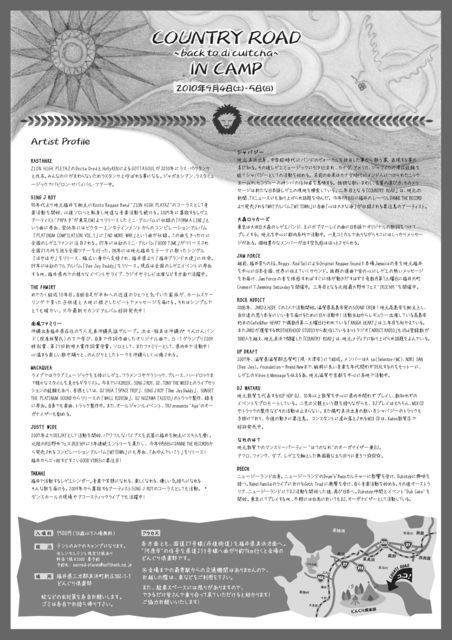 9月4日(土)、5日(日)に福井県美浜町のキャンプ場、どんぐり倶楽部で開催されるイベント、COUNTRY ROADに出ます! 基本的にレゲエのイベントですが出ます! 初野外フェスです!
