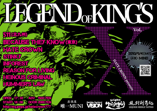 おかげさまでHATE CROWNの自主企画LEGEND OF KING'S が10回目を迎える事が出来ました。