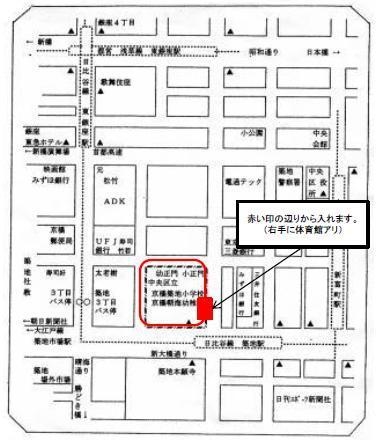 会社でイベントを行う予定でしたが、イベントがなくなった為、募集します。 今回は経験者の方のみ募集でしたが、規定人数に達しない為、男女経験者問わず募集いたします。楽しくバスケをしましょう。 よろしくお願いします。 日時:9/13(月)18:00〜21:00 場所:京橋築地小学校 住所:〒104-0045 中央区築地2-13-1 ※ 東京メトロ日比谷線:築地駅本願寺側の出口の隣 参加費:\500円 〜〜〜〜〜〜〜〜〜〜〜〜〜〜〜〜〜〜〜 18:00〜18:30は、各自シュート練、ストレッチをして 人数が集まったら軽いアップ、その後流し