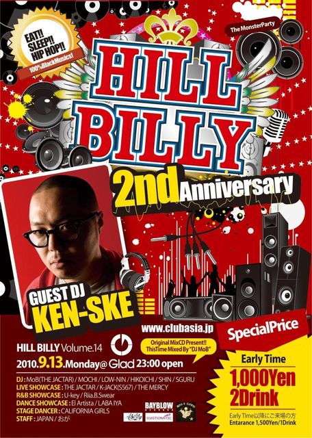 管理人様、告知失礼します。 2010.9.13(月)Glad(旧ASIAP)にてHILL BILLYが開催されます☆ 「もしかしたらいくかも…」って人でもかまいません。 代表者のお名前と、人数を 自分にメッセージして頂けたらゲスト料金 一時まで1000/2D 一時以降は1500/1D にてご案内いたします! ☆☆☆☆☆☆☆☆☆☆☆☆☆☆☆☆☆☆☆☆☆☆☆☆☆☆☆☆ 尚、メッセージ不要で入場を希望される方はエントランスにてDJ Hikoichi(ひこいち)のゲストで「ライフ」と伝えて貰えたらゲストで入場できるようにしておきますのでよろしくお願いします♪ ☆☆