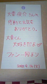 タイトルは「大感謝祭にお越しの皆様へ」 ですがイベント内容は 14日に千秋楽をむかえます それにあたりまして 大東くんにありがとうとお疲れ様の 意味を込めまして花束を 贈りたいなと思いました 私だけでは小さな花束しか 用意できないため 皆さんの協力求めます 大東くんに大きな花束を 贈りたいなって思ってます 期日がかなり短いです なので14日大感謝祭にお越しの皆様、 もしくは千秋楽にお越しの皆様 ご協力頂けないでしょうか? 私は学校のため千秋楽は行けないのですが 大感謝祭には参加し
