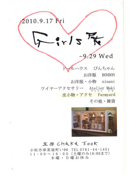 石川県小松市 チャカフーク 9/17〜29日まで 11時から4時まで 土曜日のみ6時 雑貨 ドールハウス お洋服など 雑貨が並びます