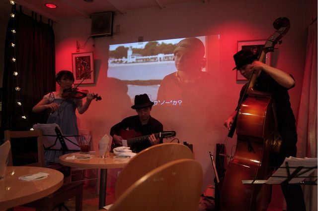 ☆千石カフェのジャズナイト☆ 9月20日月曜日は、人気のマヌーシュジャズナイト。 前回も満員御礼♪帰りに次回の予約をされた方もいらっしゃいました。 ありがとうございます! 今回もSonge d'Avrilのお二人と、 阿部恭平(ベース)さんを迎えておおくりいたします♪ 鈴木睦美(バイオリン) Songe d'Avril http://mixi.jp/show_friend.pl?id=1201626 河野文彦(ギター)Songe d'Avril http://mixi.jp/show_friend.pl?id=530091 阿部恭平(ベース) Made in France ↑ とても素敵なパリを想わせる音楽♪