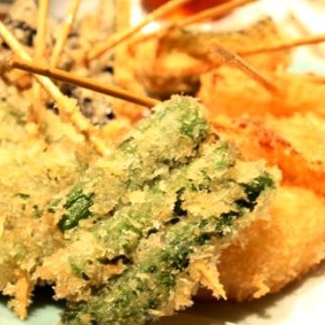 オーナー自信の拘りの串揚げを前面に出した待望の第1号店(写真左)です。 8月上野に従来の串揚げ店のイメージを一掃したお洒落なお店がオープン、 今回は2階(写真中)を貸切にして、串揚げ(写真右)をお腹いっぱい食べてもらいます。 貸切予約は1日1組限定ですし、お得なこの機会にみなさん是非参加してください。 翌日が仕事の人も多いと思ったので、18時30分の早めのスタートです その時間から夕食も兼ねて(?)、アツアツの串揚げ全17種類食べ放題で、 もちろんビール(生・瓶)も含めた飲み放題込みでセッティングしてあります