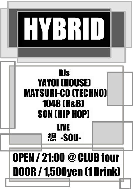 “秋分の日”前夜は、『HYBRID』!!普段は異なるイベント異なるジャンルで活躍するDJが集い、それぞれの色を混ぜ合わせ、一夜を彩る。今年ファースト・アルバムもリリースした「想 -sou-」のLIVEにも注目!!