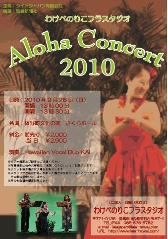 昨年よりはじめたコンサート 今年は9月に開催です。 まだチケット発売前ですが、お楽しみに! 会 場 板野町文化の館さくらホール 演 奏 Hawai'ian vocal duo KAI 時 間 開場 13時 開演 13時30分 入場料 前売り2,000円 当日2,900円 ※ビデオ撮影および録音はご遠慮ください。 ※チケット無き場合は入場をお断りいたします。 ※スタッフが迷惑な行為と判断した場合は強制的に 退出を願う事があります。 その場合の料金は、返金致しかねますので予めご了承ください。