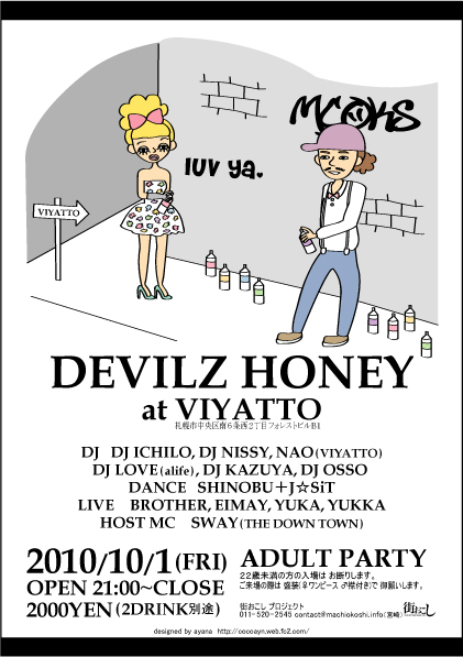 HAPPY HOUR 21:00〜23:00(MEN¥1000/2d WOMEN ENTRANCE FREE)