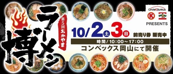 【日時】2010年10月2日(土)〜3日(日) 10:00〜17:00 【場所】コンベックス岡山(岡山市北区大内田675番地) 【価格】当日ラーメン券は700円。 前売り券ラーメン券は600円、 サークルK・サンクスで発売中です。 各自お買い求めください。 【参考】第5回おかやまラーメン博・公式サイト http://www1.ohk.co.jp/ramen-haku/pc_index.php 今回で、5回目となりました 「おかやまラーメン博」☆ 萬福軒も出店しますよ〜!! みんなで応援に(食べに)行きましょう♪