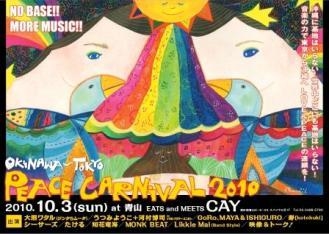 10月3日、東京を中心とした多彩なジャンルのミュージシャンが集って、基地問題に揺れる沖縄へ平和のエールを送ります。 このイベントは、10月30〜31日沖縄県名護市辺野古ビーチにて行われる『Peace Music Festa!辺野古2010』を応援しています。 10月3日はぜひ青山CAYへお集まりください。 ※※※※※転載歓迎※※※※※ 沖縄に基地はいらない! 世界中どこにも基地はいらない! 沖縄から 東京から LOVE & PEACEの連鎖を ! 沖縄に押し付けられた「基地問題」は、日米政府の問題。 日米安保50年の今年、東京でこそNOの声を