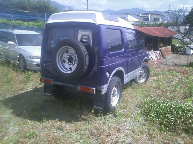 ・メーカー名: スズキ ・車名: ジムニー ・年式: H1 ・グレード:インタークーラーターボ パノラミックルーフ 4WD ・ミッション: マニュアル (マニュアル/オートマ/CVT) ・シフトの位置: フロア (フロア/コラム) ・排気量: 550 ・色: 紫 ・リサイクル券の有無: 有 3350円 ・ガソリン/ディーゼル: ガソリン (首都圏の規制で車検の取れないディーゼル車はその旨明記してください) ・走行距離: 39000km ・車検の有無: 無し ・事故歴: 無しと聞いています。こちらに来てからはありません。 ・キ