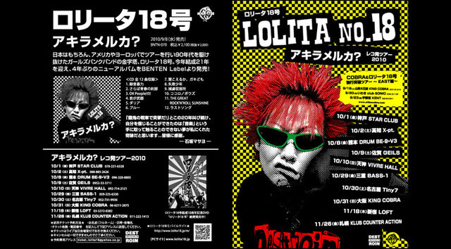 ロリータ18号のNEW ALBUM発売TOURに熊本で参加させていただくことになりました!! ロリータ18号NEW ALBUM発売記念「アキラメルカ?」TOUR2010 出演:ロリータ18号、THE PISTON SLAPPIN、SWITCH-BACK、BALROG、 The Drunken Dogs、SIDEKICK、DJ/QP(ex.JUNIOR) OPEN:18:00 START:18:30 前売¥2000 当日¥2500 ★1ドリンクオーダー