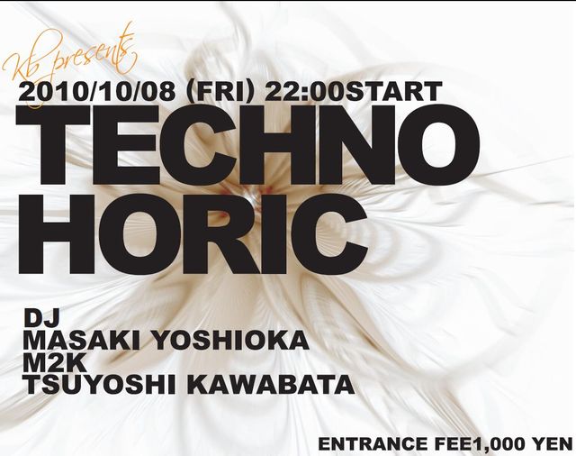 管理人様貴重なスペース失礼いたします。 本日のイベントの告知をさせていただきます。 _/_/_/_/_/_/_/_/_/_/_/_/_/_/_/_/_/_/_/_/ [TECHNO HOLIC] 開催日:2010/10/08 START 22:30 会場 :秋田町FUNZONE 入場料:\1,000- スナックフード進呈あり DJ MASAKI YOSHIOKA M2K TSUYOSHI KAWABATA _/_/_/_/_/_/_/_/_/_/_/_/_/_/_/_/_/_/_/_/ テクノ、ハウス、エレクトロを中心としたクラブ系サウンドのパーティーです。 DOMMUNEをはじめとしたUSTREAMの効果によって、都内を中心に 益々の盛り上がりを見せるテク