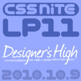 LPシリーズの11弾は「デザイナーズ・ハイ」。 ビジュアルデザインにフォーカスしてお送りします。 http://lp11.cssnite.jp/ 伝説の回となった2010年1月の「CSS Nite in Ginza, Vol.43」の、 原 一浩(karadesign/fxb)+矢野りんによる「デザイントレンド総括」最新版ほか。 http://cssnite.jp/ginza/vol43/ http://cssnite.jp/archives/post_1753.html ※こちらは参加表明です。正式なお申し込みは別途。 (参加表明いただいた方には、早期割引をご案内します) -------------------------------------- 今なら間に合いますので、