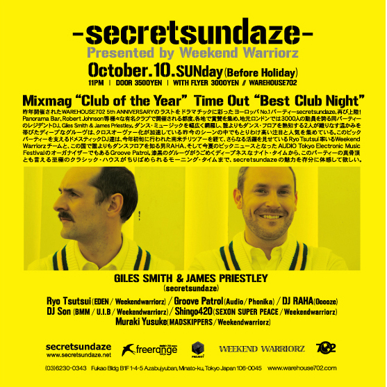昨年開催されたWAREHOUSE702 5th Anniversaryのラストをドラマチックに彩ったヨーロッパNo.1パーティー、secretsundaze、再び上陸!
