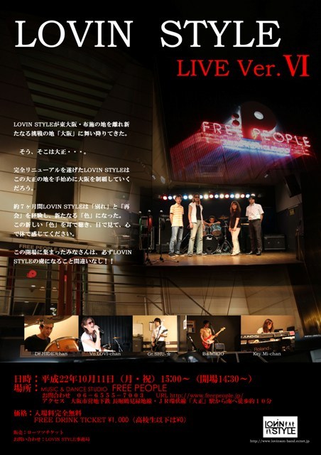 LOVIN STYLE の 6th LIVE が決定致しました 今回のLIVEでは、約1ヶ月程前に新規加入してくれた 新Bass:MIKIOを迎えての初LIVEとなります 新規加入してくれたMIKIOですが、現在 急ピッチで多数の楽曲の練習に取り組んで くれておりますので、 6度目となる今回のLIVEでも過去の曲数に劣らない LIVEが実現出来そうです その他メンバーも前回の5th LIVEから 約7カ月の沈黙を経てのワンマンLIVEになりますので、 相当力入っております 是非ぜひこの 新生LOVI STYLEのLIVEを 応援しに来て頂けません