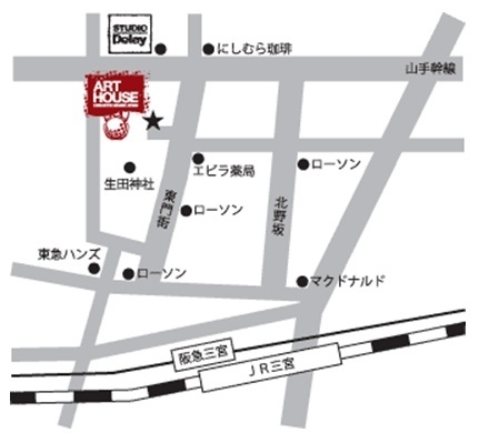 ☆場所☆ 神戸ART HOUSE http://www.arthouse.ne.jp/livehouse/index.html http://www.arthouse.ne.jp/studio/mobile/ 〒650-0004 兵庫県神戸市中央区中山手通2丁目1-27伊豆ビル TEL : 078-334-1348 / FAX : 078-334-1390 JR・阪急三宮駅徒歩約8分 ☆三宮駅からの行き方☆ ※行った事ないので、ネットで見つけたののコピペです 『行き方その1』 三宮東急ハンズ右隣の 東門街を北に進みます。 順に ローソン(左側) 次もローソン(右側) エビラ薬局 を過ぎ左折。 生田神社の入り口横の 建物です