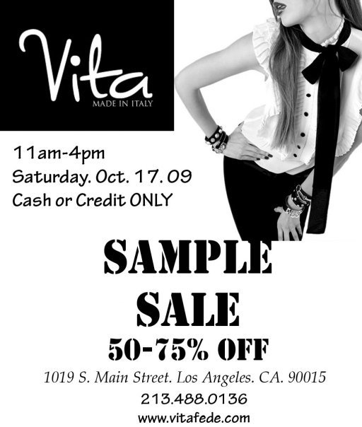 Vita Fedeが今週の土曜日にLADowntownにてサンプルセールを行います。