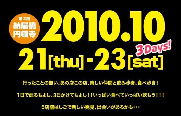 日にちが決まりましたね 10月21〜23日 食べ歩KING in 納屋橋・円頓寺 http://ameblo.jp/tabe-aru-king/ http://www.nagoyatv.com/tabearuking/ 参加店舗の紹介などはまだみたいかな 前回のイメージでいくと 大人数での参加は無理 したがって4〜5人のグループが最適かと思います 今回はここで参加メンバーの募集はしますが 各グループ毎の行動になります ご了承ください 参加日時、時間などに合わせて グループが出来ればいい名と思っています 参加したいけど相手が見つからない方 ここで呼びかけてみてください
