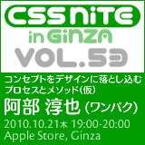 ゲスト:阿部 淳也(ワンパク) こちらも追ってアップデートします。 http://cssnite.jp/ginza/vol53/ -------------------------------------------------- ・「mixiでの参加表明」(=仮)と「事前登録」(=正式)は異なります。 ・mixiで参加表明いただいた方には、事前登録を、少し早めにご案内いたします。 ・確実にご入場されたい方は、mixiにて参加表明の上、 忘れずに事前登録をお願いします。 ・参加表明は9月末日で締め切ります。 とりあえず、表明しておく、というスタンスで結構です。 ・事前登録は、開催のおよそ1週