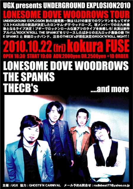 共演は、先日NEWアルバム"ROCK'N'ROLL THE SPANKS"をリリース、北九州、博多のみならず、東名阪でのライブも精力的に行っている、北九ロック最後の砦ザ・スパンクス、下関から新世代のビートロックバンド、注目のTHE CB's