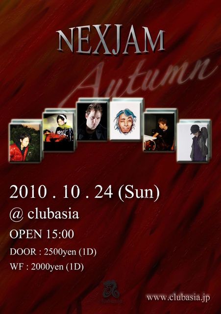 NEXJAM 2010/10/24(Sun) @clubasia (Shibuya) OPEN 15:00 DOOR:2500yen(1d) W/F:2000yen(1d) - MAIN FLOOR - DJ FREAK (MHONORAL / Plus Records) DJ VIVID (Turned on / 2E2L) CroZi WestCoast Jackin' TOSHI × Assy GAMISUKE OG3 - VJ - アサヒ digi sayo VJ KEI pukusan Merry Sakai Akira - 2nd FLOOR- YoU × MoMoCo (TECHNO CUTS) Tsukajii × yo-da (ipis) tobi Mitsuru_em HIROSUE × KON M&A K-NARI Air Break - LOUNGE - YAJI gunz. DJ muu NA