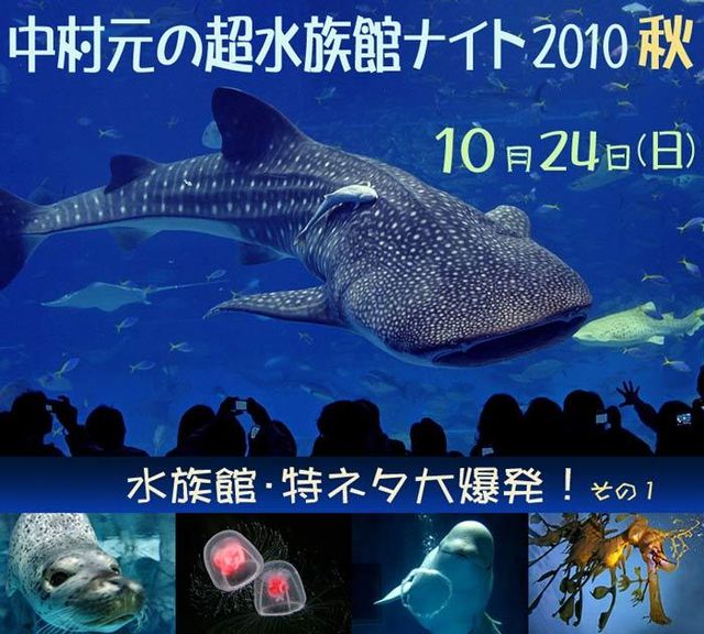 中村元の超水族館ナイト2010秋 〜水族館・特ネタ大爆発!〜 Open 17:30 Start 18:30 End 21:00 (予定) 前売り券2000円 当日券2500円(飲食代別途必要・ビール¥600など) この夏は、中村元さんが、雑誌にテレビにと大暴れしていたのはご存じでしょうか? 最新ガイド『中村元の全国水族館ガイド112』も出版され、新サンシャイン水族館のプロデュースでも顔を見せるようになってきた、今が旬の水族館プロデューサーによる水族館トークシリーズ第7弾『中村元の超水族館ナイト2010秋』のお知らせです。 2010夏の「ペンギンから人生を