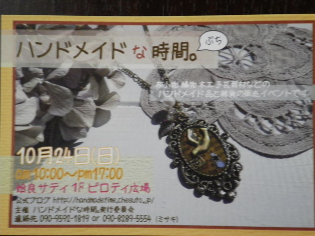 布小物・編物・木工手芸資材などの ハンドメイド品と雑貨の販売イベントです。 今回ネイルブースも仲間入りさせて戴くこととなりました かわいいハンドメイド品を見がてら ぜひジェルネイルも体験にいらして下さいませ 一本のみお試しジェル ¥100