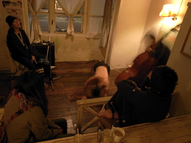 1月の沖縄ツアーで、celloでも素晴らしいパフォーマンスを披露してくれた パリ在住の舞踏家・七感弥広彰氏が再来沖しライブを行ないます。 10月25日(月) 開場20時、開演21時 料金1500円+ドリンクオーダー ☆出演 七感弥広彰(舞踏) カヲルムラサキ(voice) gacha(double-bass) 前回は店外にも飛び出し、激しく行き交うタクシーの運ちゃんに驚かれながら 伸びやかで自由な舞踏をした様は、今でも目に焼き付いて離れないほどのインパクトでした。 泉崎の街角が、ヨーロッパの夜の街のように錯覚しました。