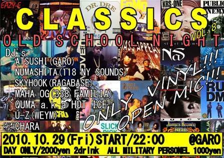 あのCLASSICSが一年の時を経てCLUB GAROで開催される。